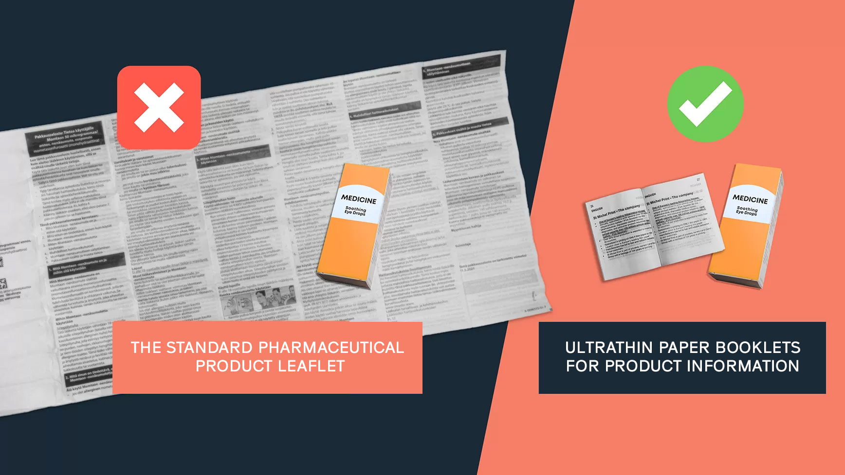 Our Ultrathin Paper Booklet solutions for pharmaceutical product information offer patients a superior user experience. The booklets are easy to use, the print is clearly legible, and they can contain more information and languages.